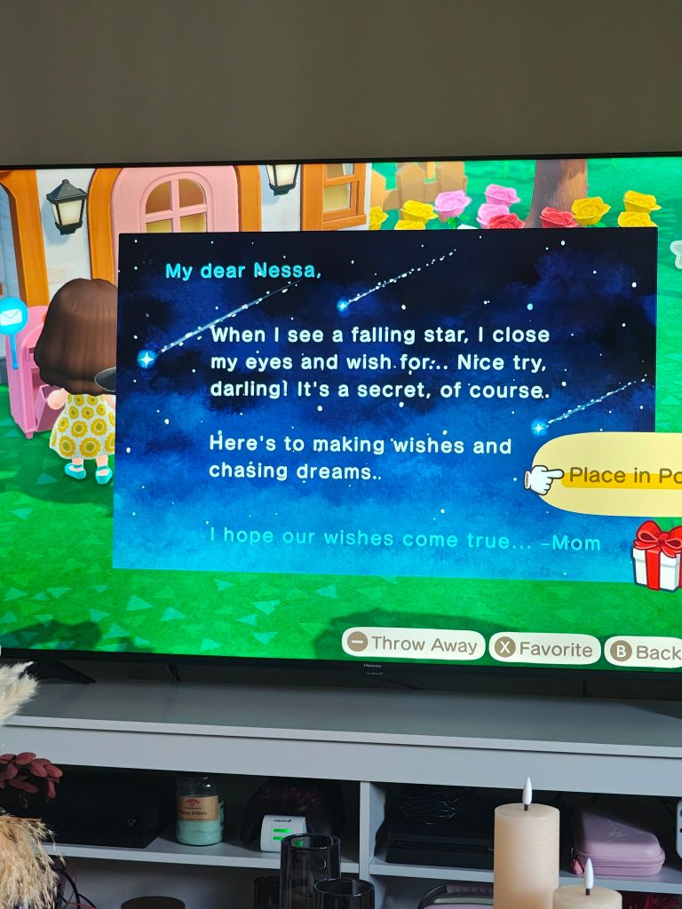 In games like Sims and now Animal Crossing, I could safely plant myself and build roots and watch my fruits blossom in a place that was safe. I was allowed to grow in a peaceful, reliable environment safely. I was allowed to imagine what life could be with the right environment and a good foundation.