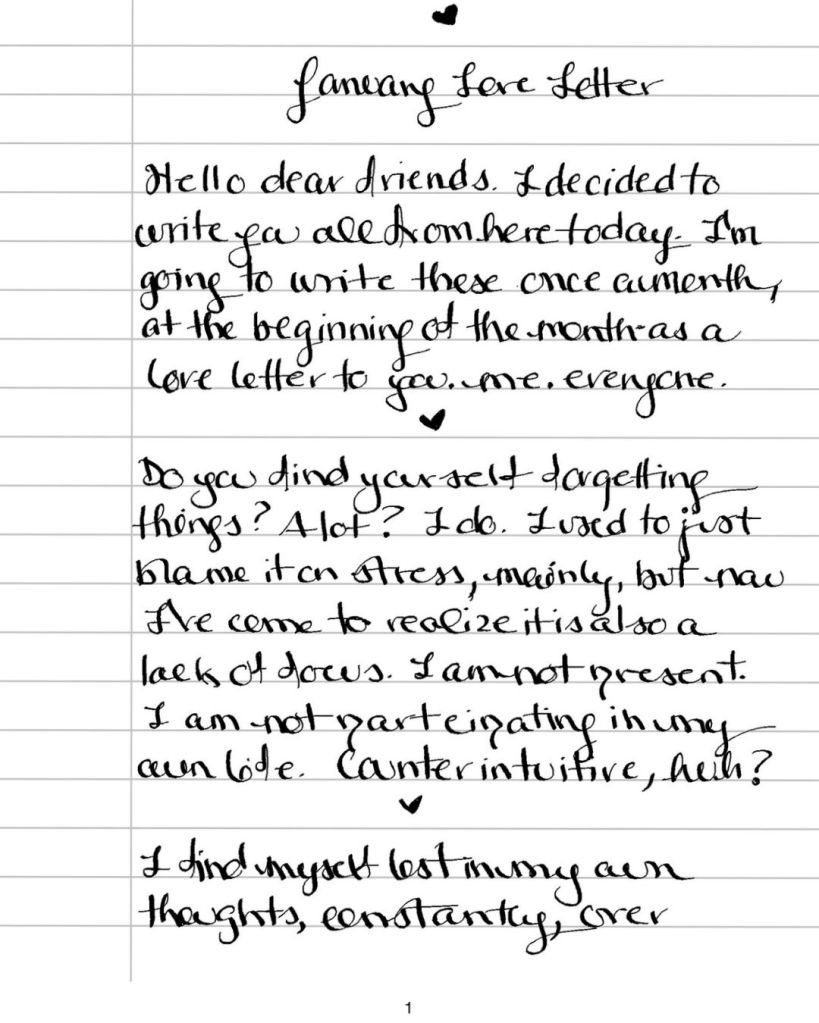 Hello dear friends. I decided to write you all from here today. I’m going to write these once a month at the beginning of the month – as a love letter to you. me. everyone.